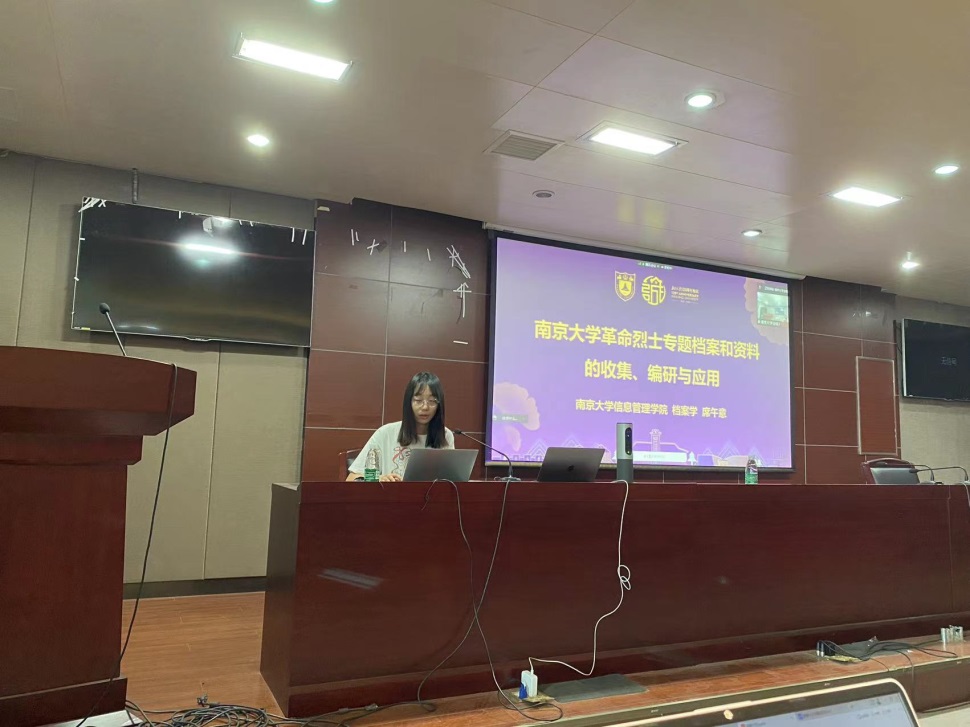 心蕊直播 席午意同学分享了《心蕊直播 革命烈士专题档案和资料的收集、编研和应用》,从收集资料、电子展板设计到革命烈士专题档案和资料在思政课中的具体应用,展现了信管学院和南大革命纪念馆研究中心的特色工作,也展示了档案学科如何在赓续红色血脉、建立红色资源观、助力红色文化建设方面发挥积极作用。