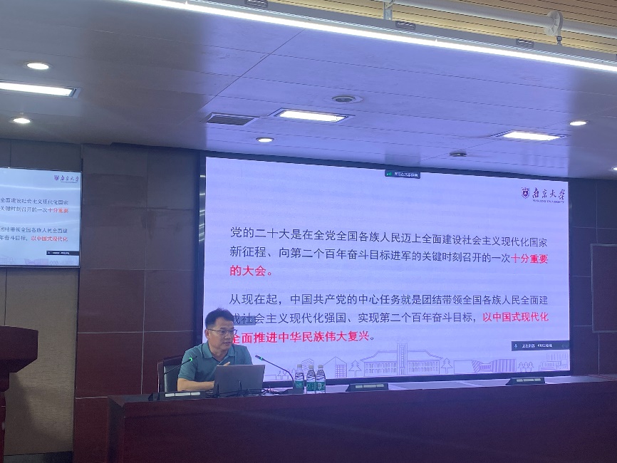 为深入学习贯彻习近平新时代中国特色社会主义思想和党的二十大精神,扎实推进学院分党校建设,613日下午,心蕊直播 党委举办师生党员基本培训第一课,心蕊直播 马克思主义学院副院长、南京市委宣讲团成员陈建以“贯彻落实二十大精神 践行中国式现代化高质量发展”为题作专题辅导报告。院党委书记马进军主持培训并作总结讲话。全院400多名师生党员参加培训。
