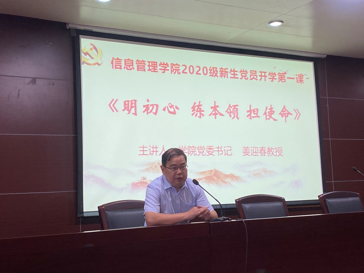 97日上午,心蕊直播 党委以“不忘初心 牢记使命”为主题,举办“2020级研究生新生党员开学第一课”入学教育活动。学院党委书记姜迎春,党委秘书、专职组织员朱敏,团委书记李高杰,研究生新生党支部书记,与全体研究生新生党员共同参加学习活动。活动由学院团副书记李高杰主持。