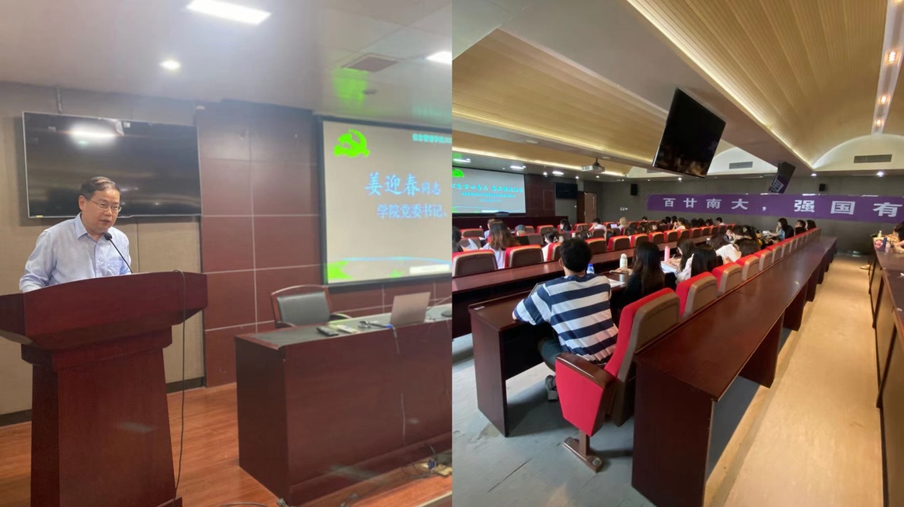 党委以“心系百廿南大 志在报效祖国”为主题举办2022届毕业生党员主题教育活动。学院党委书记姜迎春,党委委员、研究生辅导员刘千里,党委秘书、专职组织员朱敏及全体2022届毕业生党员参加活动。活动由学院党委副书记罗萍主持。