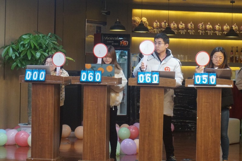 在复活赛中,九名选手你追我赶,难分高下,比分一度非常接近,显示了同学们优秀的就业知识储备和信息检索技能。比赛进入加赛环节。最终,在抢答环节成功晋级的三名同学进入了第二轮个人赛环节。