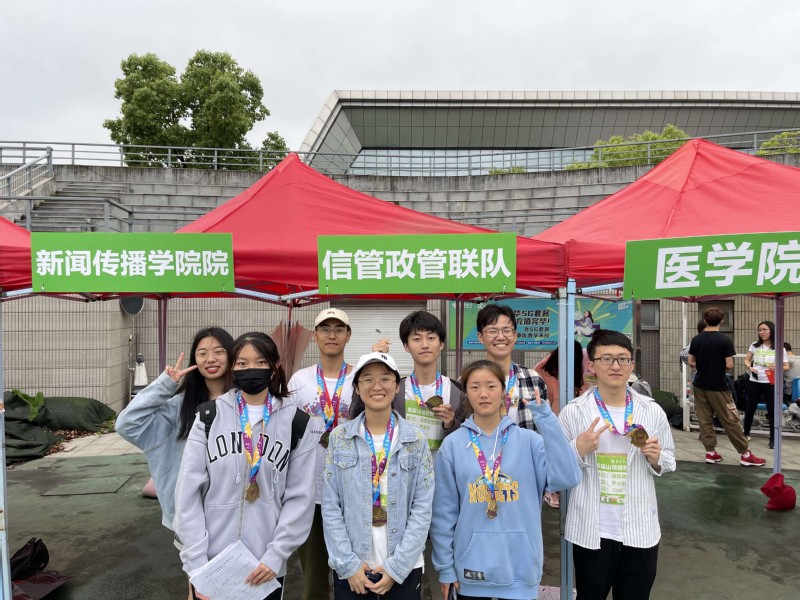 的同学和政府管理学院的同学组成的“信管政管联队”参加了南大首次山地马拉松大赛。