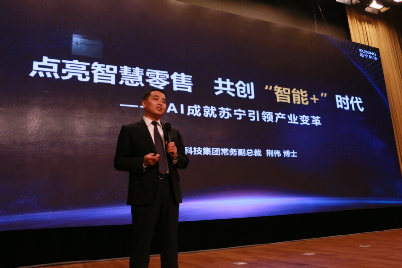 第四场演讲由山东财经大学刘培德教授主持。苏宁科技集团常务副总裁荆伟博士为大家分享了关于AI 点亮智慧、共建“智能+ ”时代的思考。他立足于产业的角度,从AI 成就苏宁引领产业变革角度展现了AI 在业界的作用,展现了技术与产业结合,以更好为产业的服务。