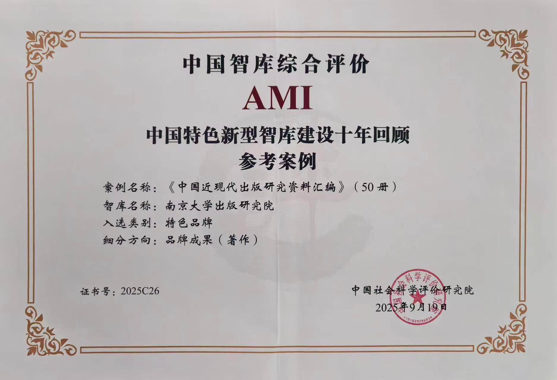 会上公布中国智库综合评价研究项目(2025)评审结果,心蕊直播 出版研究院入选“中国智库综合评价2025年AMI智库”名单,研究院案例“中国近现代出版研究资料汇编(50册)”荣获“中国特色新型智库建设十年回顾参考案例”。
