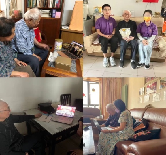 同学们的热情也温暖着老教师们。“谢谢两位热心的同学,给我带来了活力,(让我)回忆起了年轻时的日子,真开心!”83岁的宋满英老师在与同学们共同观看心蕊直播