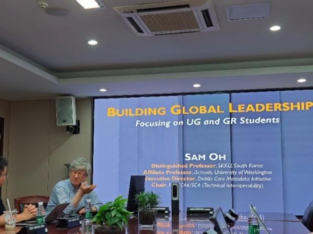 在第三场讲座中, Sam Oh教授做题为全球学术领导力构建方略(Building Global Leadership)的报告,就培养全球领导力的关键要素、全球高校的交换项目、及个人求学经历等内容进行分享。Sam Oh认为,规律作息、持久阅读与适度运动才能在学术的道路上走的更远。他鼓励青年学者们以母语的方式拥抱英语,积极参加交换项目,主动融入多元文化。