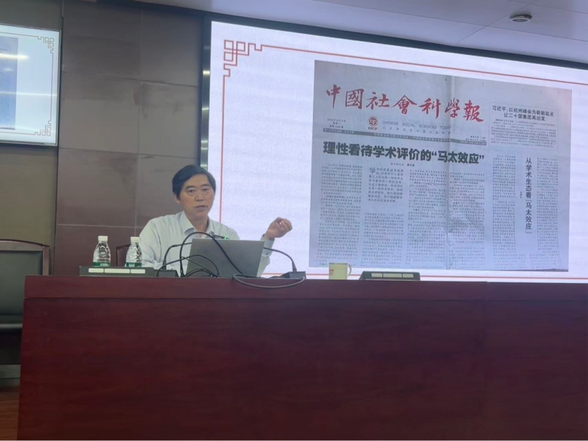 讲座伊始,柯平教授从人文社会科学宏观视角出发,以其在《中国社会科学报》发表的《从学术生态看“马太效应”》为引,深入剖析了学术生态和学术共同体意识的内涵。他结合自身在学界四十余年的耕耘心得,指出学科发展始终受到外部生态系统的多重影响,带领听众回顾了信息资源管理共同体在学科内外部系统交互作用下的更名历程,并系统反思了当前目录学等传统领域学科出现的“内冷外热”现象。