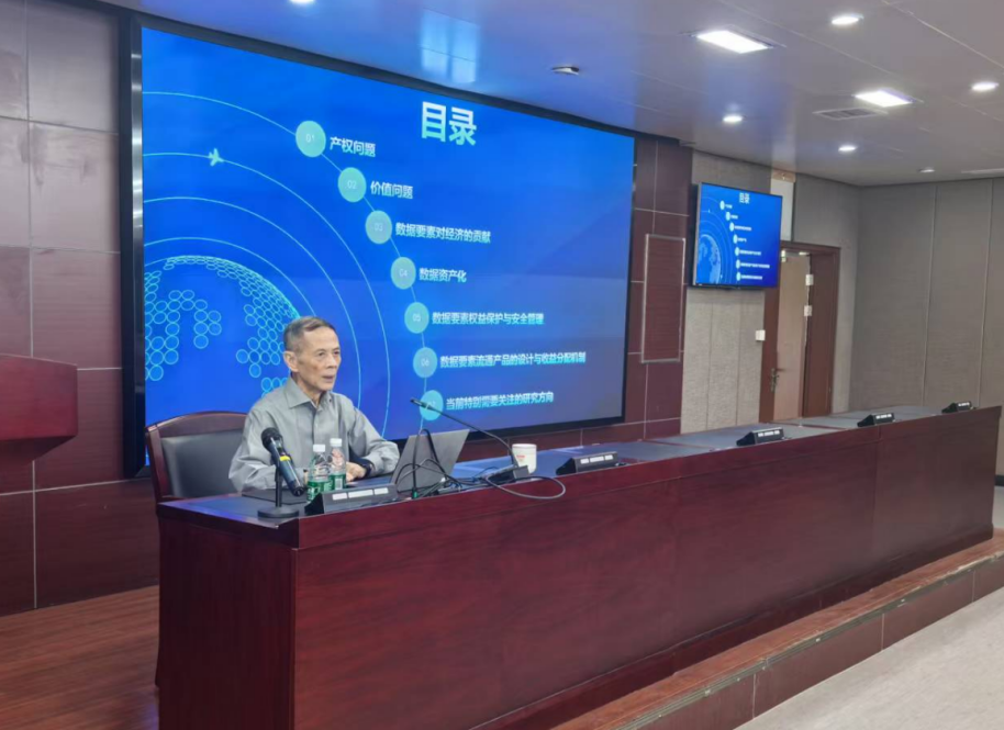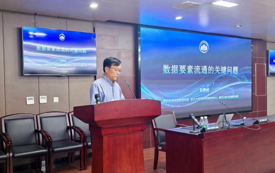 马费成教授莅临主讲,以“数据要素流通的关键问题”为题,系统阐释了数据要素市场化配置中的权属界定、交易机制与安全治理等核心议题,为现场听众提供了前沿理论视角。