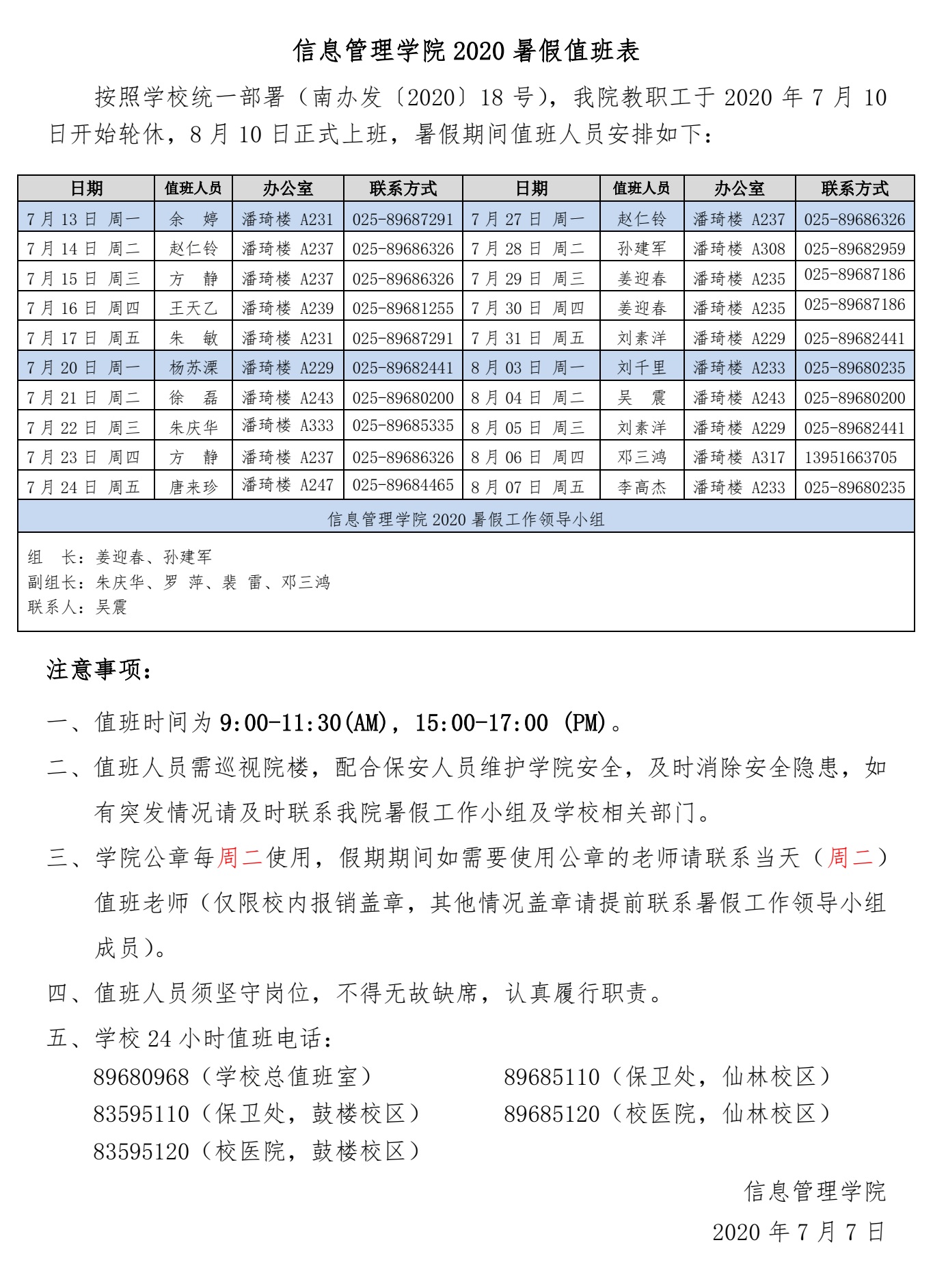 心蕊直播 2020 年端午节值班计划