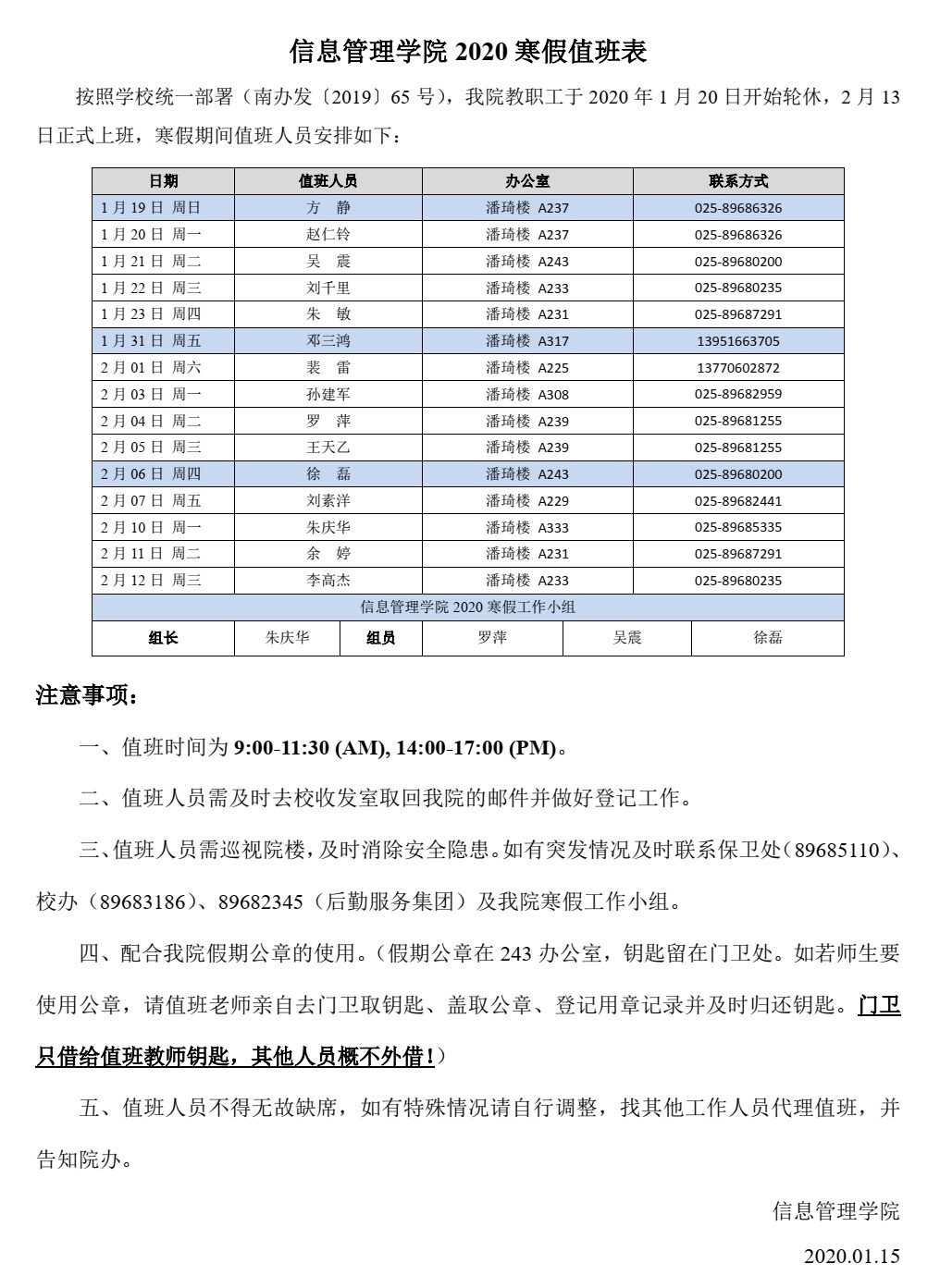 心蕊直播 2020年元旦放假值班表
