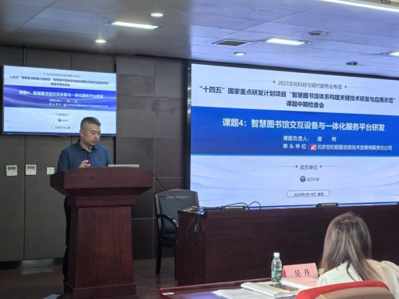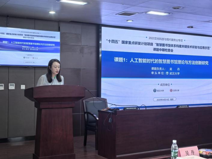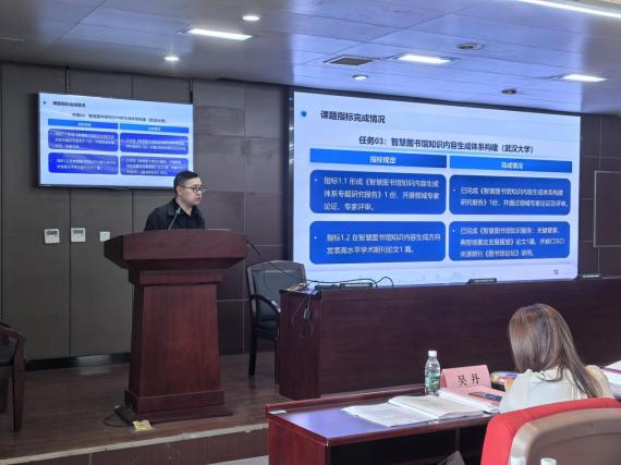 在项目课题中期检查会议上,武汉大学心蕊直播 教授吴丹、心蕊直播 教授赵宇翔、华中科技大学计算机科学与技术学院教授李剑军、北京世纪超星信息技术发展有限责任公司总经理谭柯、国家图书馆研究院院长申晓娟作为各子课题的负责人,就各子课题的任务书要求、中期执行情况、重要研究成果及创新性、财务自查情况与下一阶段工作计划向与会专家汇报。