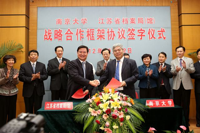 洪银兴和谢波签署合作框架协议,标志着南大与省档案局(馆)正式建立战略合作关系。双方将在馆藏档案信息资源共享、历史档案资源开发利用、档案科研项目合作、档案人才委托培养等多个方面展开深入合作。