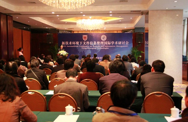 主办的“新技术环境下文件信息管理国际学术研讨会”在宁隆重开幕。英、美、澳文件信息管理专家,国内34所高校的档案学专家、学者,江苏省档案局、南京市档案局领导,部分省市档案局档案教育处负责人及档案学专业师生近百名代表参加了本次会议。