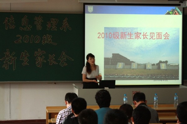 9月5日上午10点,信息管理系2010级本科生家长见面会在仙林校区教学楼II区305教室举行。系主任孙建军、党委书记江莹出席了家长见面会。会议由系党委副书记戴咏梅主持。