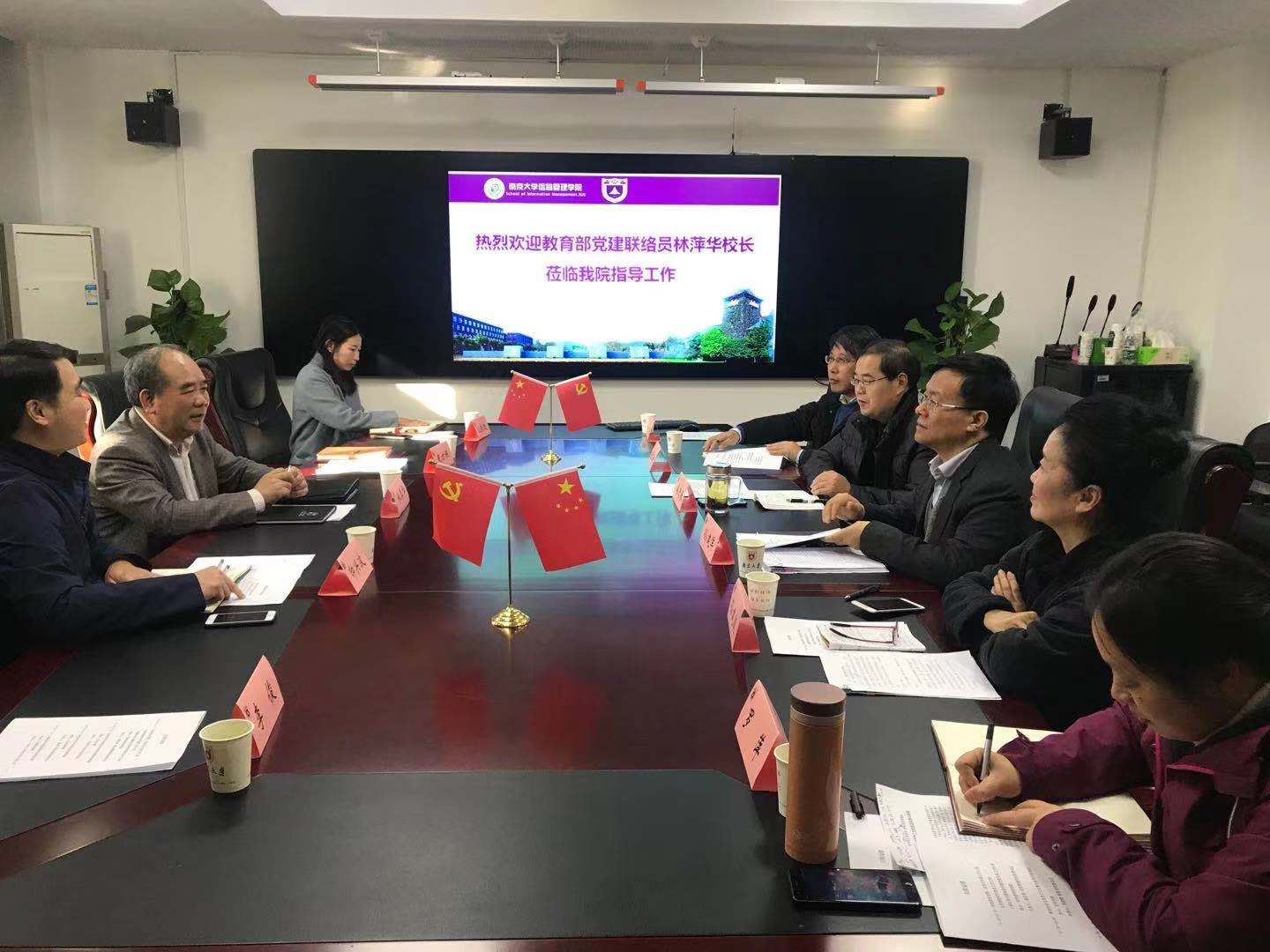 1212日下午,教育部党建联络员林萍华同志在学校党委组织部副部长印兴波同志等一行陪同下,来心蕊直播 调研指导党建工作。姜迎春书记做了党委工作汇报,孙建军同志就学院党委推动学科建设和事业发展做了汇报。林萍华同志评价认为,学院对党建工作认识站位高,党建氛围浓厚,党建目标明确,工作务实细致,应予充分肯定。他还对学院下一步党建工作给予了指导意见。座谈会同时邀请和听取了计算机系应用教师党支部柏文阳和李俊同志做工作汇报。参加当天座谈会的还有学院党委兼职组织员、原直属业务单位党委书记孙建波同志、学院党委副书记罗萍同志、学校党委组织部束方银同志、沈铁迪同志和学院党委组织员朱敏同志。