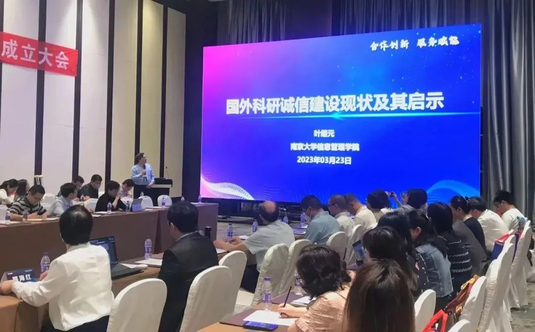 叶继元教授被聘选为科研诚信建设工作委员会主任委员,并应邀在行业专家研讨会议上作了题为“国外科研诚信建设现状及其启示”的主旨报告,从科研诚信、科研不端行为、科研伦理等基本概念的剖析出发,介绍并总结了美国等国外主要国家及国际组织的科研诚信建设现状与研究特点,以此为基础,对我国科研诚信建设提出了十点建议。其后,中国政法大学刑事司法学院印波教授、北京万方数据股份有限公司知识产品开发部总工程师刘建华博士等也作了相关报告。在研讨交流环节,与会专家积极发言,就“人才评价”“科研诚信评价”“论文工厂”等方面展开了热烈的讨论。