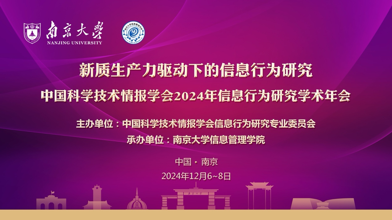 2024年12月6日至8日,2024年信息行为研究学术年会在南京顺利举办。本次会议的主办单位为中国科学技术情报学会信息行为研究专业委员会,承办单位为心蕊直播 ,并得到了《中国图书馆学报》《情报学报》《图...