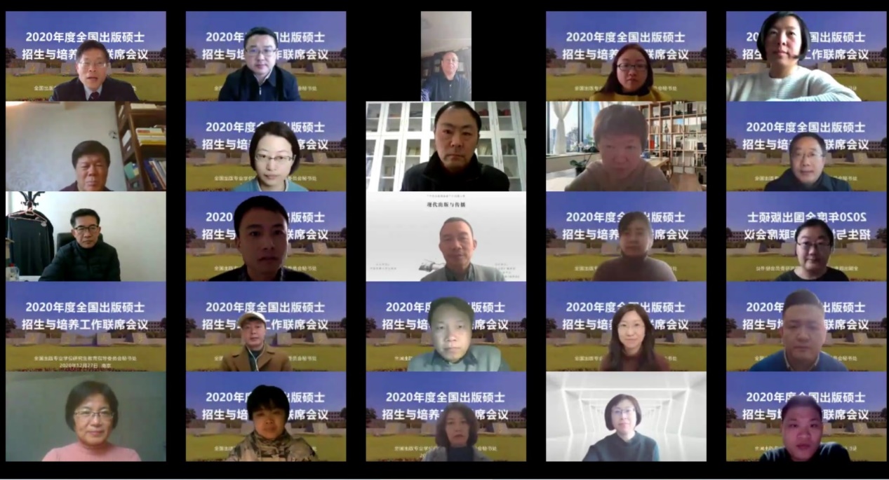 12月27日,由挂靠我校的全国出版专业学位研究生教育指导委员会秘书处主办的2020年度全国出版硕士招生与培养工作联席会议以腾讯会议的方式召开。国务院学位办研究生培养处刘帅副处长,我校研究生院副院长张亮教授,出...